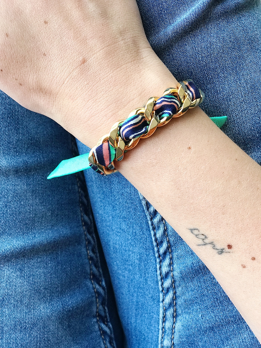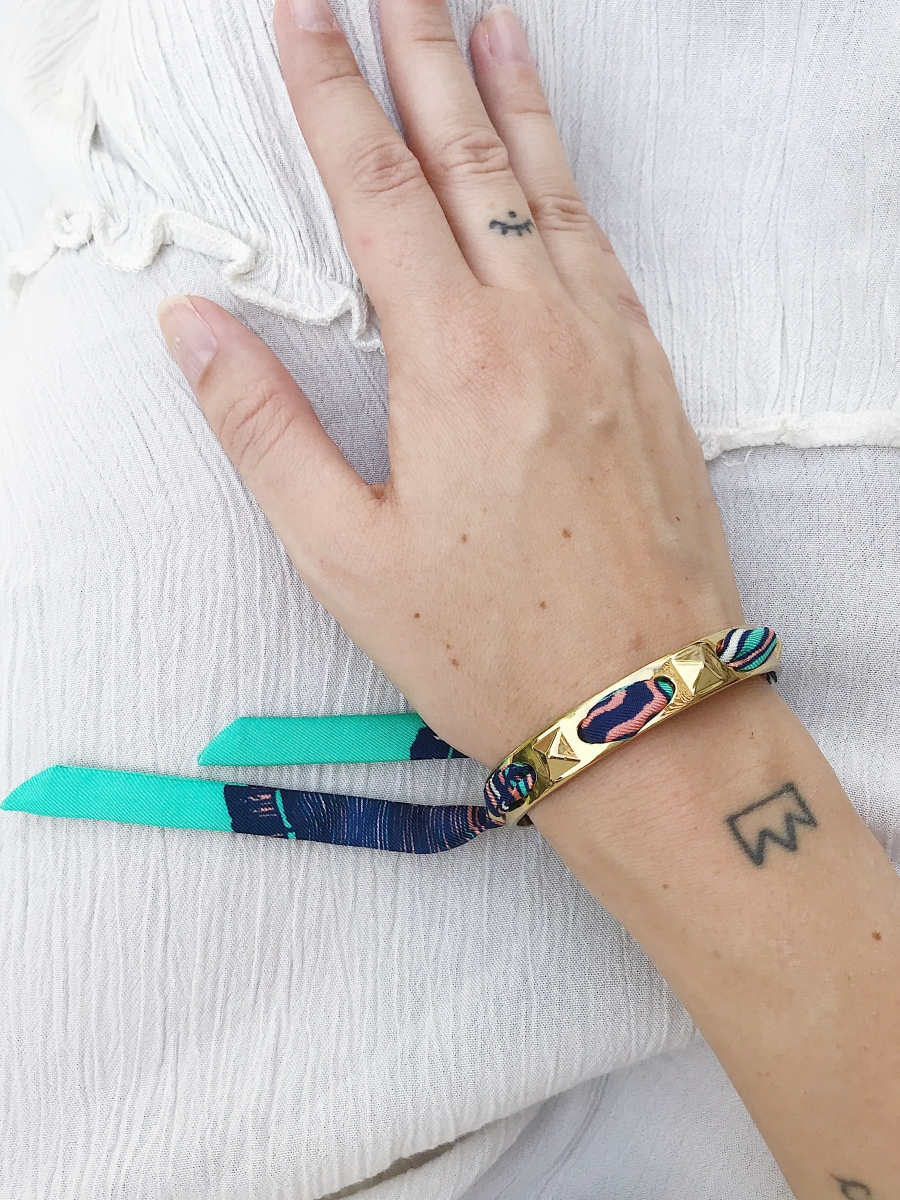 Hodvábnu stuhu k náramkom Proust, Clous a Chaine je možné vplietať rôznými spôsobmi. Môžete ju ale nosiť aj osobitne.