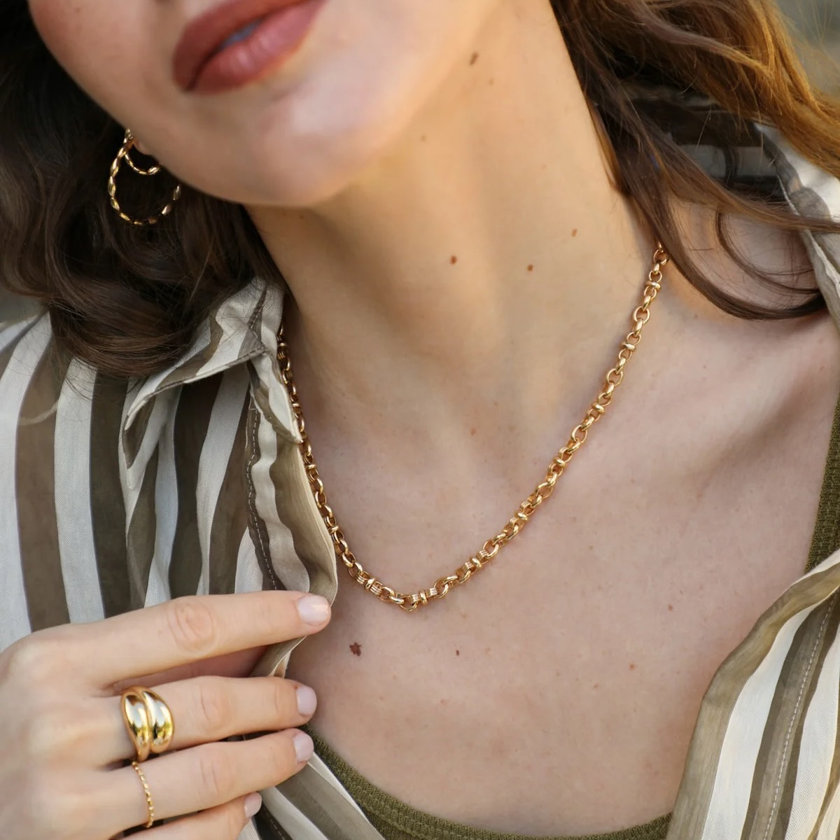 Náhrdelník Paris tvorí jemne zaoblená, mierne hrubšia retiazka, ktorá pôsobí sofistikovane a nadčasovo elegantne. Každý kúsok je precízne ručne spracovaný. K náhrdelníku je dostupný aj ladiaci náramok.