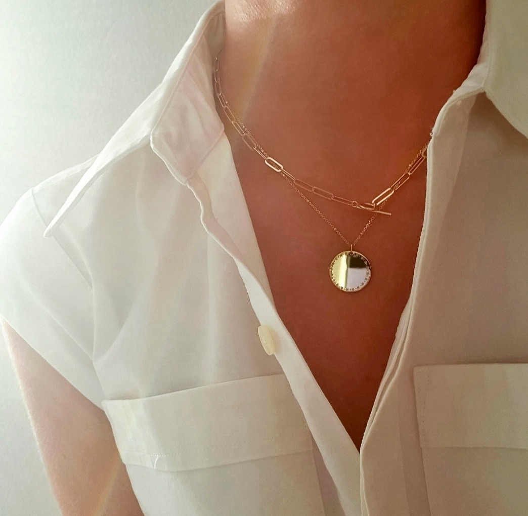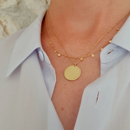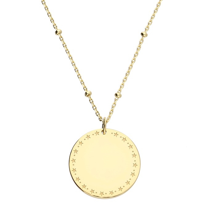 Tento úžasný elegantný náhrdelník s medailónom na ktorom sú vygravírované hviezdy je skvelou voľbou na kombinovanie s inými náhrdelníkmi.