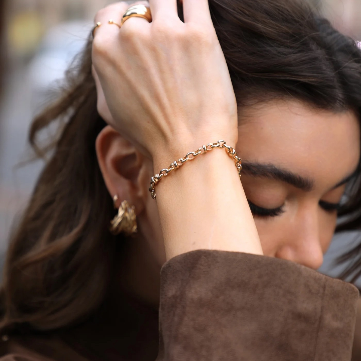 Náramok Paris tvorí zaoblená, mierne hrubšia retiazka, ktorá mu dodáva sofistikovaný a nadčasovo elegantný vzhľad. K náramku je dostupný aj ladiaci náhrdelník.